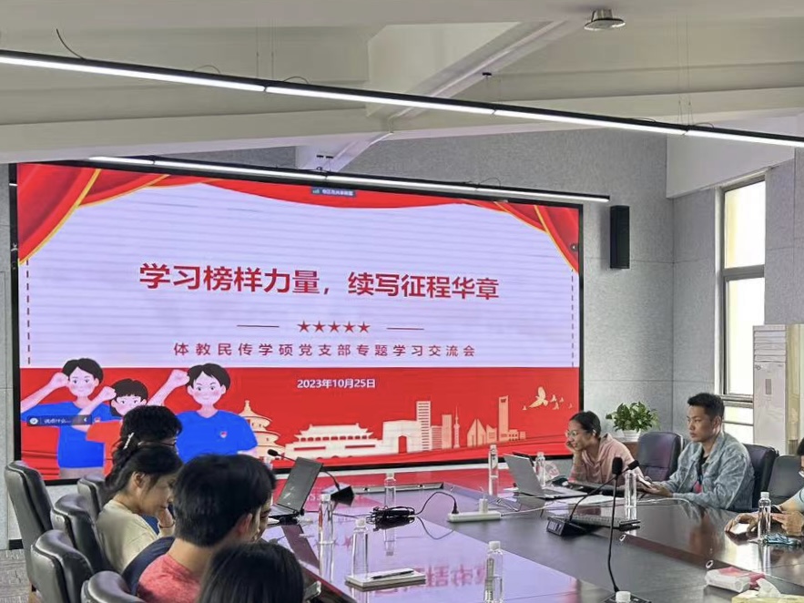 为深入学习感悟习近平新时代中国特色社会主义思想,贯彻落实党的二十大精神和学校第十四次党代会精神,发挥优秀党员的先锋模范作用,增强党员使命与责任感。2023年10月25日下午,做爱自拍 体教民传学硕党支部于做爱自拍四楼会议室以“学习榜样力量,续写征程华章”为主题开展党日活动,会议由党支部组织委员张泽阳主持。